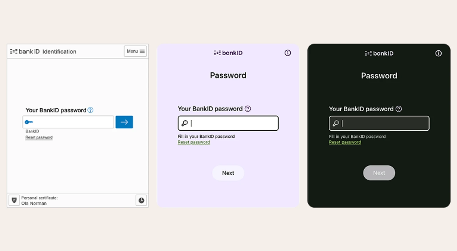 Vi oppdaterer brukergrensesnittet (UI) i BankID webklient for å tilpasse det til det moderne designet som allerede benyttes i andre tjenester i autentiserings- og signeringsflyten. Dette inkluderer en oppdatert og konsistent visuell stil for alle dialoger som vises under brukerreisen.