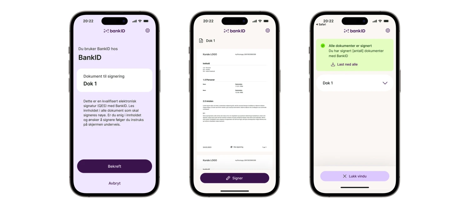 Den nye versjonen av BankID-signering er utviklet med tanke på tilgjengelighet, enkel bruk og effektiv gjennomføring, både for sluttbrukere og tjenestetilbydere. Grensesnittet er redesignet for å møte dagens krav til digital tilgjengelighet og fungerer godt på ulike enheter og skjermstørrelser.