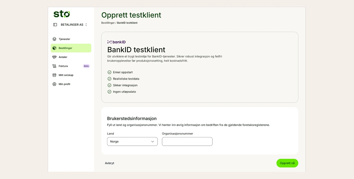 We are excited to announce an exciting new feature in the Stø portal: Self-service ordering of BankID test clients! Now you can easily order test clients on behalf of merchants without having to contact support.