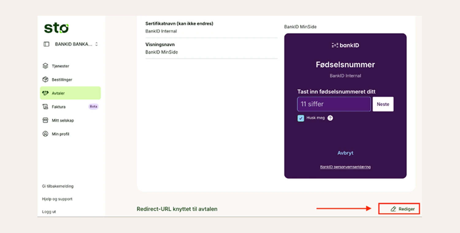 As a reseller you can easily update your BankID certificates/clients with new redirect-URL in the Stø portal. See how to in the iillustrations below.
