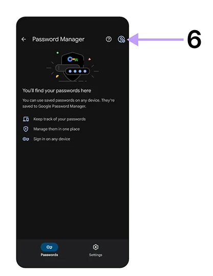 6. Blir du ikke bedt om passord? Trykk "profil"-ikonet i høyre hjørne