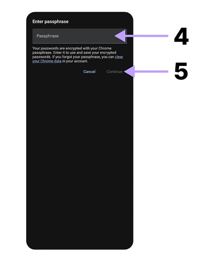 Passordet er det du bruker for å kryptere data i Google Chrome.