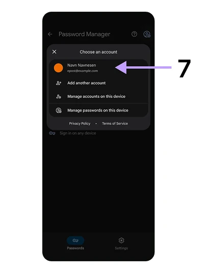 Dersom du ikke blir bedt om passordet, men i stedet kommer inn på en skjerm med tittel "Google Passordlagring", fortsetter du til neste punktnummer.